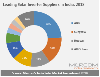 具體來說,2018年,ABB在印度太陽能逆變器市場占據(jù)24%的市場份額,陽光電源占16%,華為占12%。截至2018年底,印度市場共有35家活躍的逆變器供應(yīng)商。
